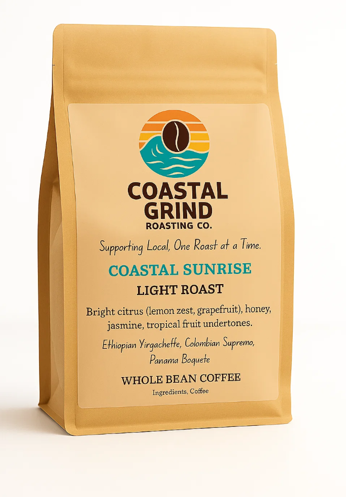 Coastal Sunrise is a vibrant light roast crafted to highlight the natural complexity of premium beans.