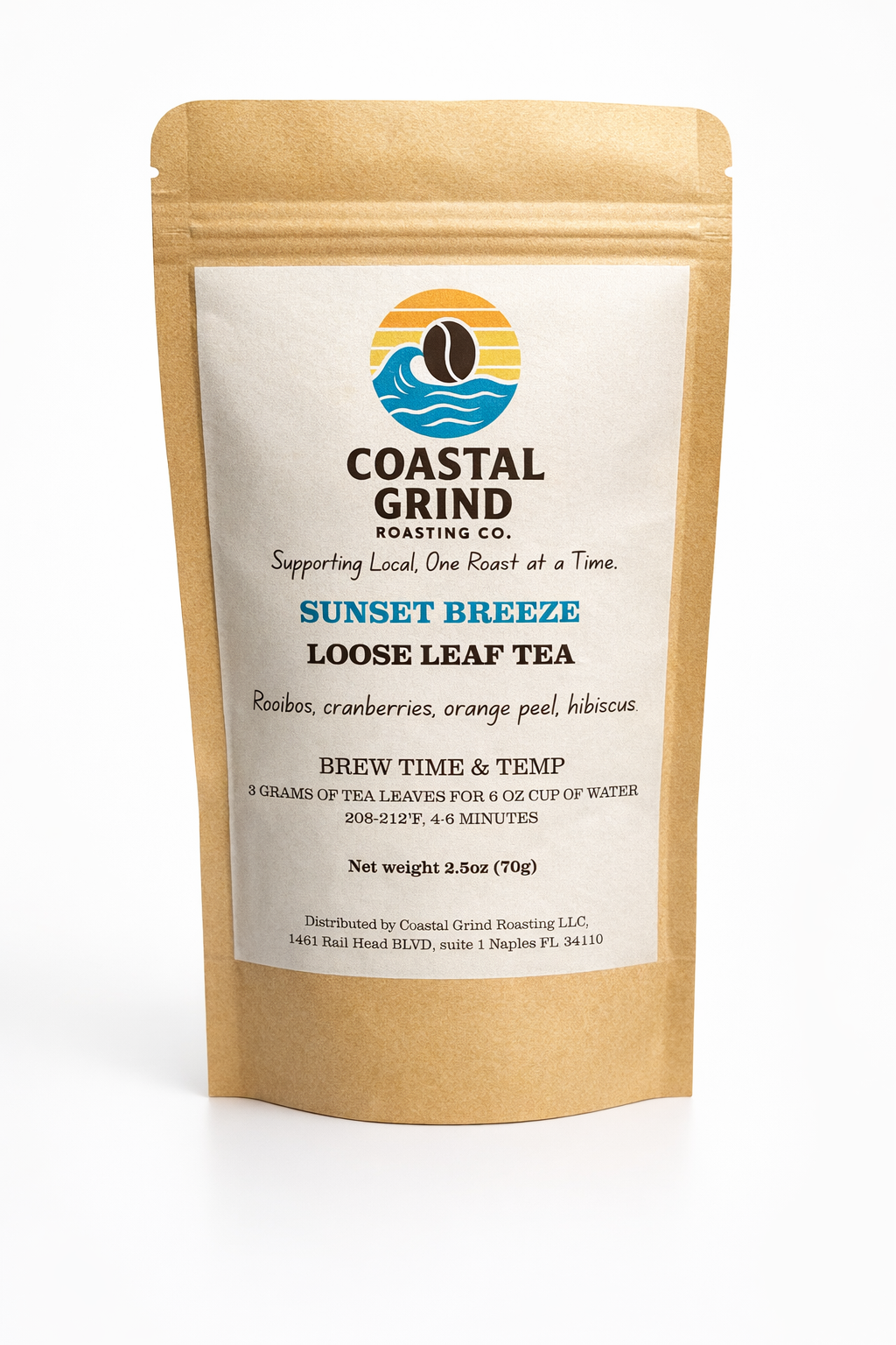 Sunset Breeze is a naturally caffeine-free loose leaf blend crafted for calm, balance, and flavor. Built on a smooth rooibos base and layered with cranberries, orange peel, and hibiscus, this tea delivers a bright yet soothing cup with subtle sweetness and a gentle citrus finish.